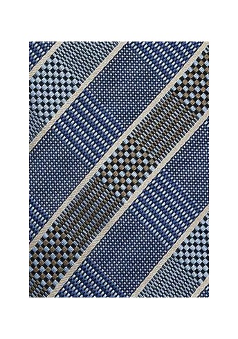 Eine ausgefallene Krawatte in elegantem eisblau. Der texturierte Grund besticht durch ein raffiniertes kariertes Ton-in-Ton-Pattern, getrennt mit feinen Streifen in sandfarben.