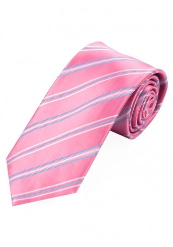 Ein stilsicheres Streifendessin in rose, himmelblau und perlweiß schmückt diese klassische XXL-Krawatte aus 100% erlesenster Seide. Diese Herrenkrawatte wurde aus 5-fach verzwirntem Seidengarn gefertigt, in Handarbeit zugeschnitten und auch per Hand genäht. Nicht nur durch erstklassiges Design, sondern auch durch edle Materialien und hohe Qualität zeichnen sich die Herrenkrawatten der traditionsreichen Marke Lorenzo Guerni aus. Durch das eingelegte sprungelastische Inlet werden Falten schnell wieder geglättet und die Herrenkrawatte springt auch nach längerem Tragen wieder leicht auf. Ein Must have für jeden gut ausgestatteten Kleiderschrank: Die Herrenkrawatte ist Herrenmode in Perfektion. Großzügige 165 Zentimeter machen diese Herrenkrawatte aus dem Hause Lorenzo Guerni auch für aufwändigere Krawattenknoten. Die Breite beträgt zeitgemäße 7,5 Zentimeter.